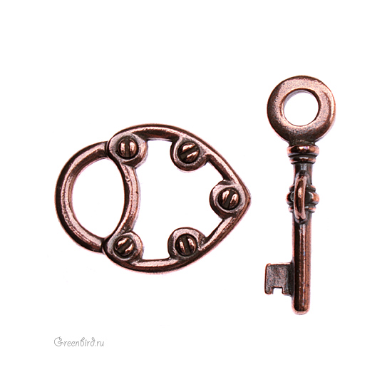 Фурнитура для бижутерии - металлический замочек. Цвет: античная медь. Размер замка: 25 х 19 мм, тоггл: 30 мм. Цена указана за 1 шт.