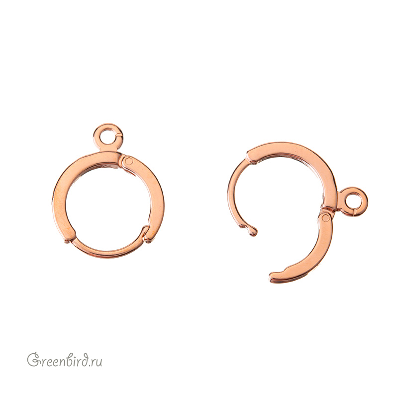 Фурнитура для бижутерии - швензы круглые. Материал: латунь, покрытие: розовое золото, Размер с колечком: 14,8 х 12 х 1,6 мм, толщина дужки 0,8 мм. Производство: Корея. Цена указана за пару.