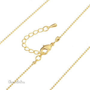 Фурнитура для бижутерии - цепочка с замочком-лобстером, с шариками и каллотами. Материал: латунь, покрытие: матовое золото. Длина основной цепочки с замочком: 43 см, шарики: 1 мм, удлинитель: 5 см. Производство: Корея. Цена указана за 1 шт.