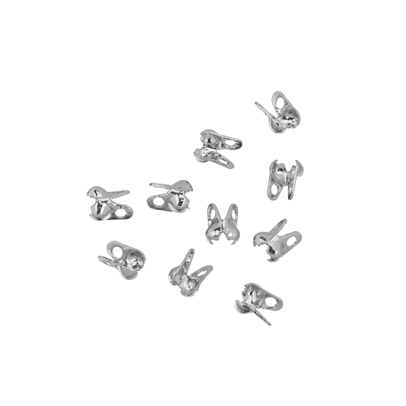 Фурнитура для бижутерии - наконечник-каллот. Подходит на диаметр цепочки 1,2 мм. Материал: латунь, покрытие: родий. Размер с колечками в закрытом виде: 3,5 x 2 х 2 мм, отверстие 0,6 мм. Производство: Китай. Цена указана за 10 штук.