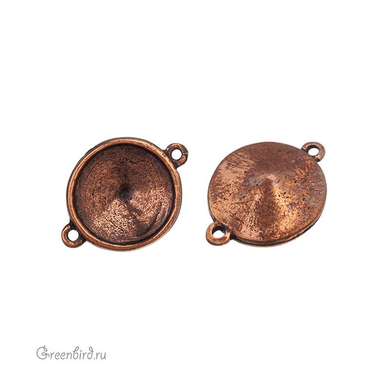 Фурнитура для украшений - закрытая оправа-коннектор для Rivoli 14 мм. Материал: пьютер (оловянный сплав), цвет: античная медь. Размер: 22,3 х 16,6 мм, петли: 1,2 мм. Производство: США. Цена указана за 1 шт.