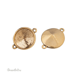 Фурнитура для украшений - закрытая оправа-коннектор для Rivoli 14 мм. Материал: пьютер (оловянный сплав), цвет: античное золото. Размер: 22,3 х 16,6 мм, петли: 1,2 мм. Производство: США. Цена указана за 1 шт.