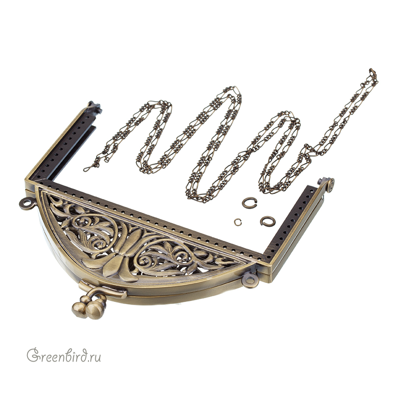 Фермуар MIYUKI с цепочкой - оформление, рамка для сумочки или кошелька из бисера/текстиля. Придает профессиональный и дорогой вид изделию. Материал: латунь. Размер декоративной части: 10 х 10 см, толщина: 9,1 мм. Длина цепочки 83 см. Производство: Япония. Цена указана за 1 штуку.