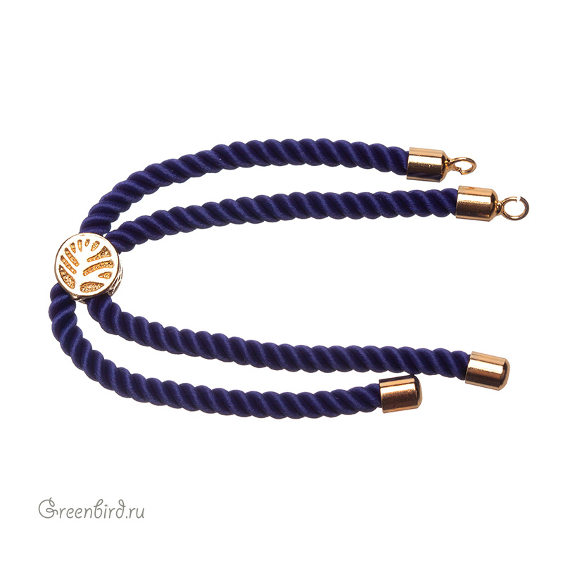 Фурнитура для бижутерии - плетеный витой шнур с колечками для крепления центрального элемента и стоппером. Материал шнура: нейлон; материал: латунь, покрытие: золото. Цвет: темно-синий. Общая длина с колечками: 11,5 см, ширина: 4 мм, размер стоппера: 8,1 х 5,6 мм, внутренний диаметр колечек: 2,2 мм. Производство: Китай. Цена указана за 1 шт.