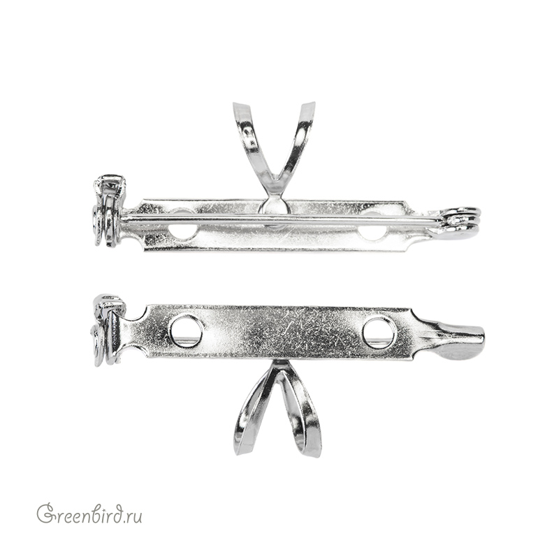 Фурнитура для украшений - основа для броши. С помощью встроенного в основу бейла брошь можно трансформировать в кулон, надев на шнурок. Материал: латунь, цвет: серебро. Размер: 32 х 12 мм. Производство: США. Цена указана за 1 шт.