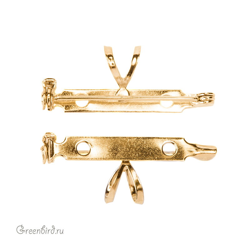 Фурнитура для украшений - основа для броши. С помощью встроенного в основу бейла брошь можно трансформировать в кулон, надев на шнурок. Материал: латунь, цвет: золото. Размер: 32 х 12 мм. Производство: США. Цена указана за 1 шт.