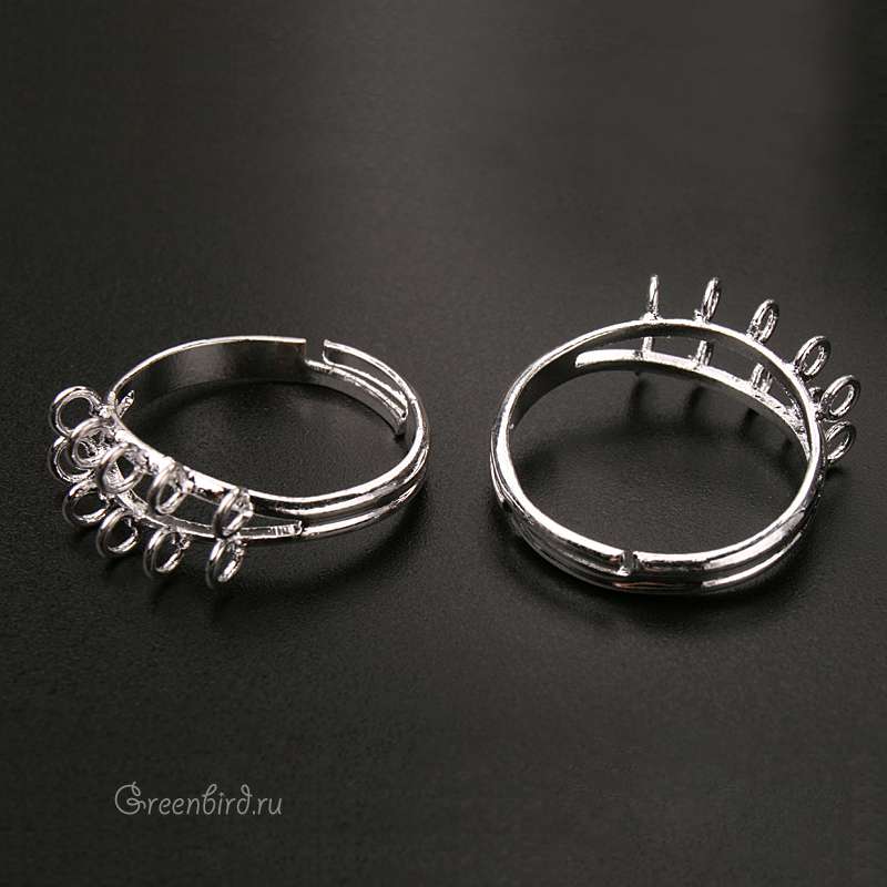 Фурнитура для украшений - основа для кольца с петлями (10 петель). Цвет: серебро. Размер кольца регулируется. Производство: Китай. Цена указана за 1 шт.