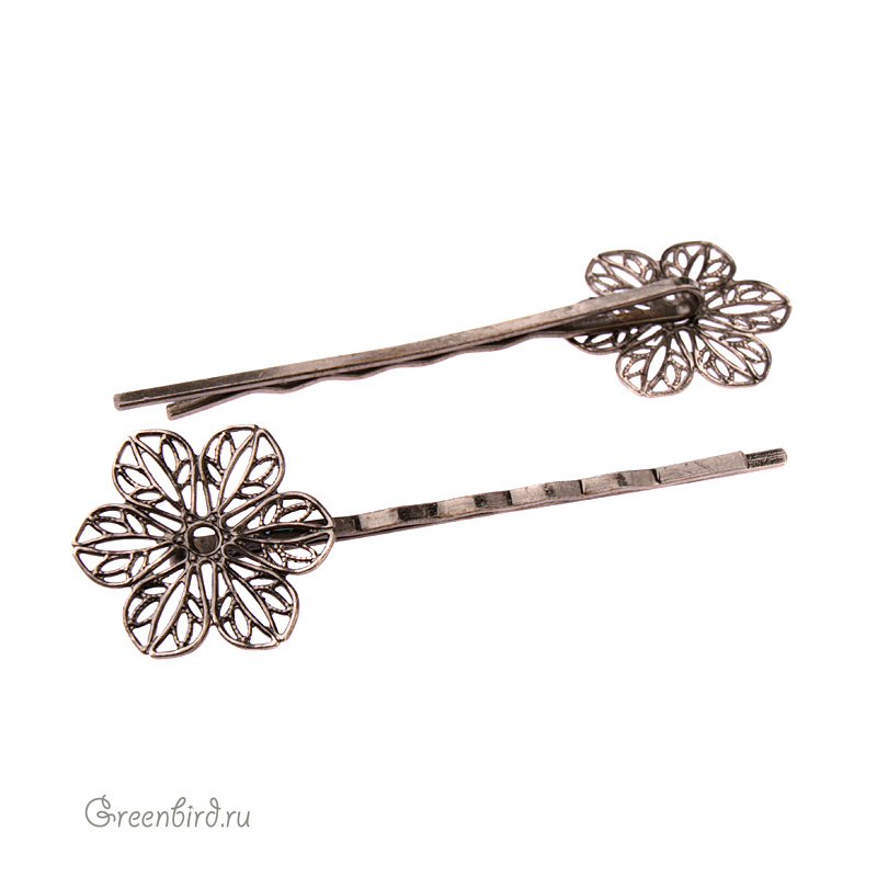 Основа для заколки-невидимки с цветочком. Цвет: черненое серебро. Длина невидимки: 5,4 см, основа-цветочек 22,3 х 20,3 мм. Производство: Китай. Цена указана за 1 шт.
