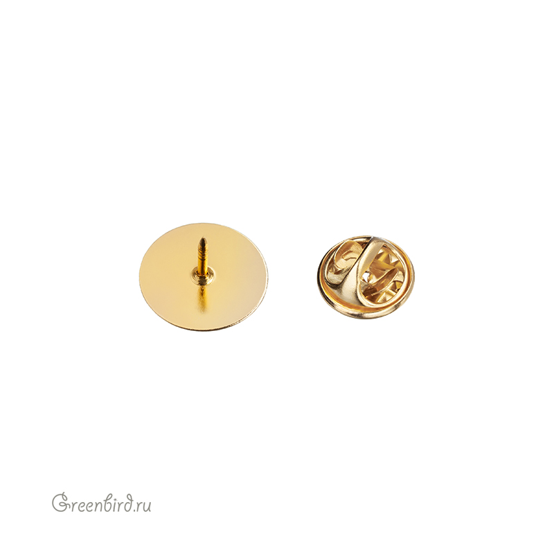 Металлическая основа для значка-пина. Игла с насечками для надежного крепления, застежка-бабочка (цанга) с зубчиками препятствует вращению броши/значка. Цвет: золото. Цанга: 11,5 х 6,3 мм; платформа для приклеивания значка: 15,1 мм, игла: 7,1 х 1,2 мм. Для надежного крепления используйте значок для материалов толщиной 2,7-3,7 мм. На покрытии допускаются потертости и мелкие царапины. Производство: Китай. Цена указана за 1 комплект (1 застежка и 1 платформа).