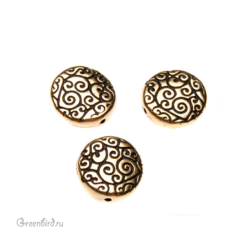 Металлическая бусина - плоский круг. Цвет: античное золото. Размер: 11 х 3 мм. Цена указана за 1 шт.