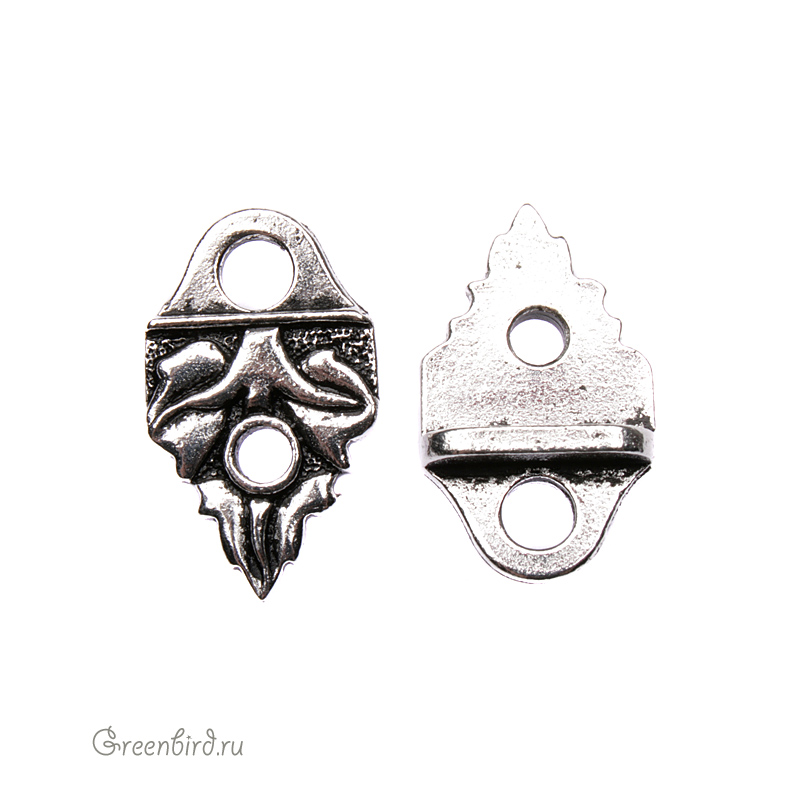 Фурнитура для украшений - концевик под заклепку для кожи, цвет: античное серебро, размер: 19 х 11 мм, отверстие: 2,2 мм. Цена указана за 1 шт.