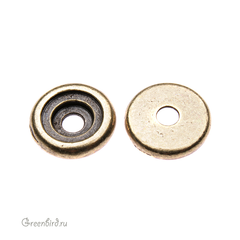 Фурнитура для украшений - элемент под заклепку, цвет: античная латунь, размер: 10 мм, отверстие: 2,5 мм. Можно вклеить флэтбэк SS34 (7,07 мм). Цена указана за 1 шт.