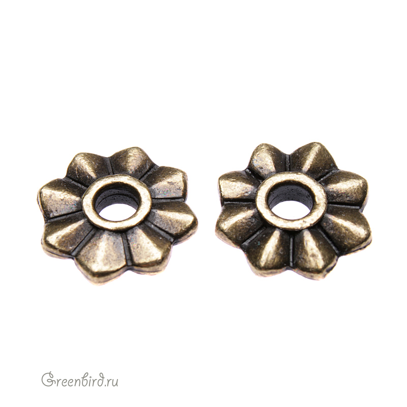 Фурнитура для украшений - элемент под заклепку, цвет: античная латунь, размер: 10 мм, отверстие: 2,5 мм. Цена указана за 1 шт.