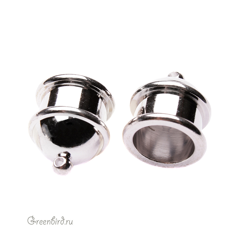 Фурнитура для бижутерии - концевик (наконечник для шнура). Цвет: родий. Размер: 16 х 15 мм. Подходит для шнура диаметром 10 мм. Цена указана за 1 шт.