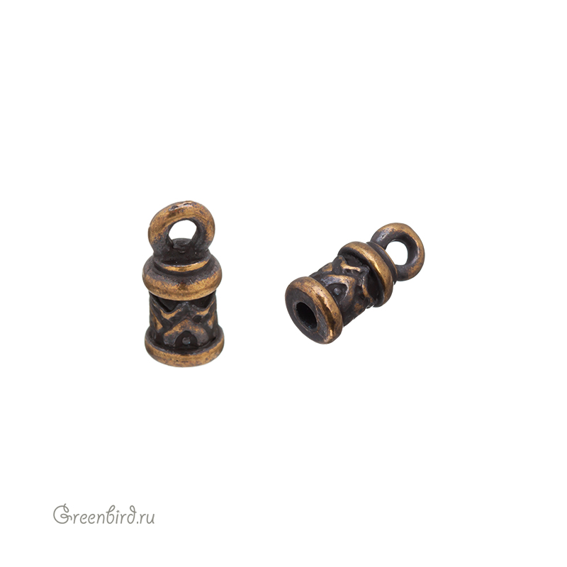 Фурнитура для бижутерии - концевик (наконечник для шнура). Цвет: античная латунь. Размер: 11 х 5,1 мм, колечко: 1,7 мм. Подходит для шнура диаметром 2,1 мм. Цена указана за 1 шт.