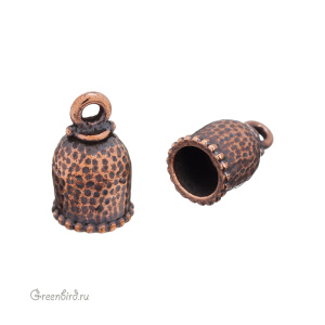 Фурнитура для бижутерии - концевик (наконечник для шнура). Цвет: античная медь. Размер: 18 х 10,8 мм, колечко: 2,4 мм. Подходит для шнура диаметром 7,5-7,7 мм. Цена указана за 1 шт.