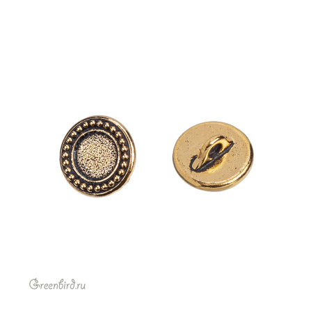 Фурнитура для шитья и рукоделия - металлическая пуговица для вклеивания кристаллов с плоским основанием (клеевых страз). Цвет: античное золото. Диаметр: 12,4 мм, высота без кристалла: 6,3 мм, петля: 2,2 мм. Подходят для клеевых кристаллов Swarovski размера SS34 (7,2 мм). Цена указана за 1 шт.