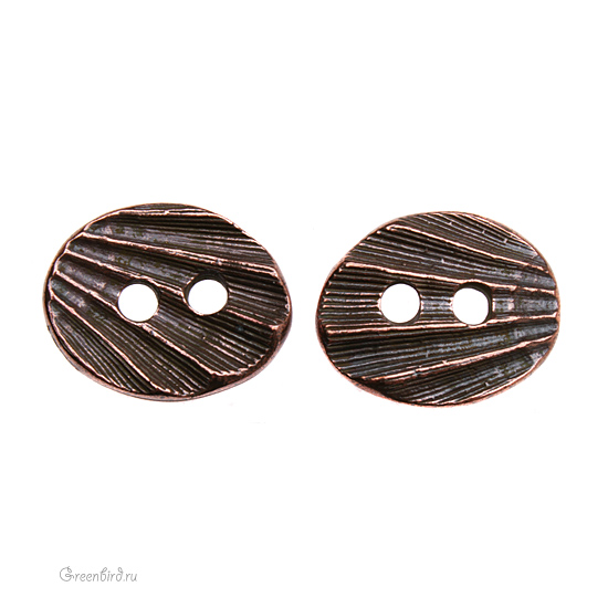 Фурнитура для шитья и рукоделия - металлическая пуговица. Цвет: античная медь. Размер: 17 х 14 мм, отверстия: 3 мм. Цена указана за 1 шт.
