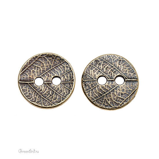 Фурнитура для шитья и рукоделия - металлическая пуговица. Цвет: античная латунь. Размер: 17 мм, отверстия: 3 мм. Цена указана за 1 шт.