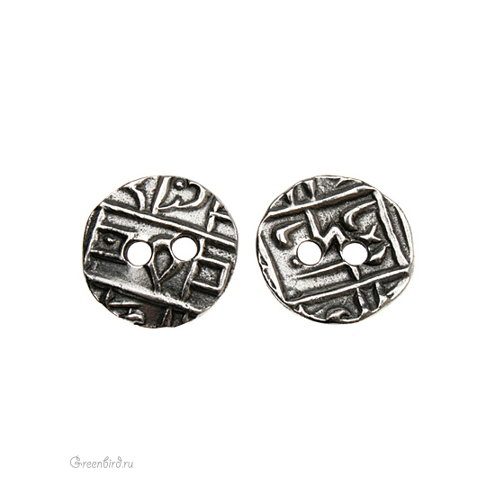 Фурнитура для шитья и рукоделия - металлическая пуговица. Цвет: античное олово. Размер: 17 мм, отверстия: 3 мм. Цена указана за 1 шт.