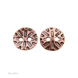 Фурнитура для шитья и рукоделия - металлическая пуговица. Цвет: античная медь. Размер: 15 мм, отверстия: 3 мм. Цена указана за 1 шт.