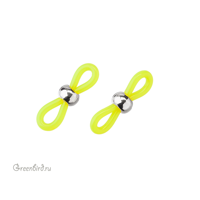 Фурнитура для бижутерии и аксессуаров - мягкий держатель (концевик) для очечной цепочки. Подвижная бусина позволяет регулировать размер петли, надевающейся на дужку очков. Материал: силикон, латунь; цвет: серебро / желтый (неоновый). Общая длина: 22 мм, толщина основы: 1,8 мм, пружинка: 4,2 х 6 мм. Размеры могут незначительно отличаться. Производство: Китай. Цена указана за 1 шт.