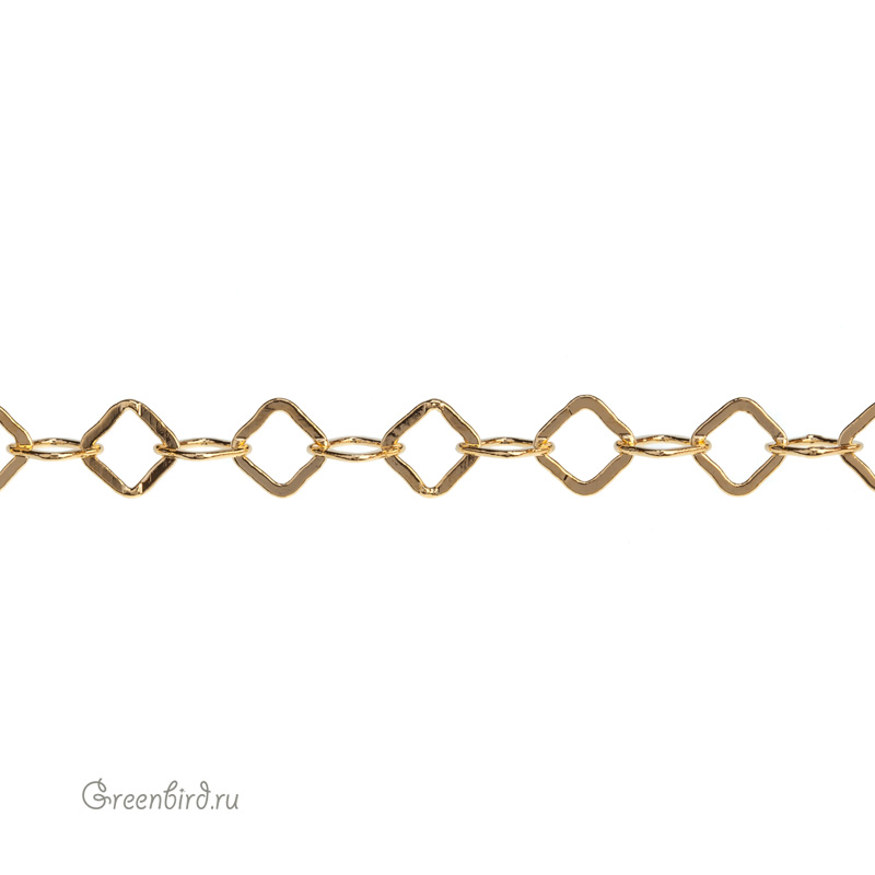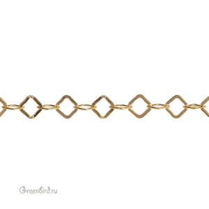 Фурнитура для бижутерии - цепочка фигурная (звенья в форме тонких ромбов). Материал: медь, покрытие: золото. Размер звена: 5,7 х 5,9 мм, толщина: 0,4 мм. Производство: Корея. Цена указана за 10 см. При заказе 2 или 3 единиц этого товара вы получите отрезок длиной 20 или 30 см соответственно.