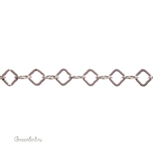 Фурнитура для бижутерии - цепочка фигурная (звенья в форме тонких ромбов). Материал: медь, покрытие: родий. Размер звена: 5,7 х 5,9 мм, толщина: 0,4 мм. Производство: Корея. Цена указана за 10 см. При заказе 2 или 3 единиц этого товара вы получите отрезок длиной 20 или 30 см соответственно.