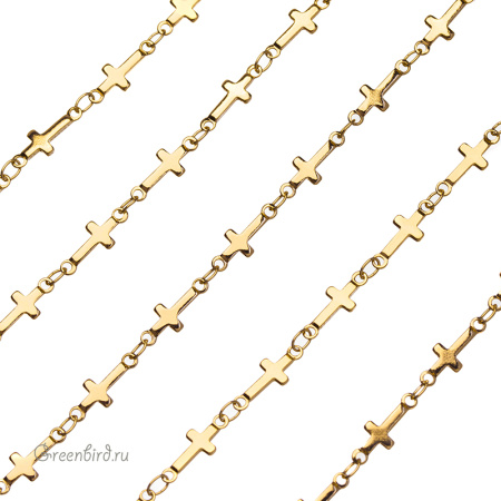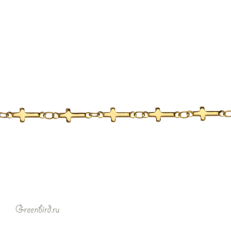 Фурнитура для бижутерии - цепочка декоративная с элементами в форме крестика. Материал: латунь, покрытие: золото. Размер элемента-коннектора: 13,3 х 5 мм, толщина: 1,1 мм. Размер соединительного колечка: 4,7 х 2,5 мм Производство: Китай. Цена указана за 10 см. При заказе 2 или 3 единиц этого товара вы получите отрезок длиной 20 или 30 см соответственно.