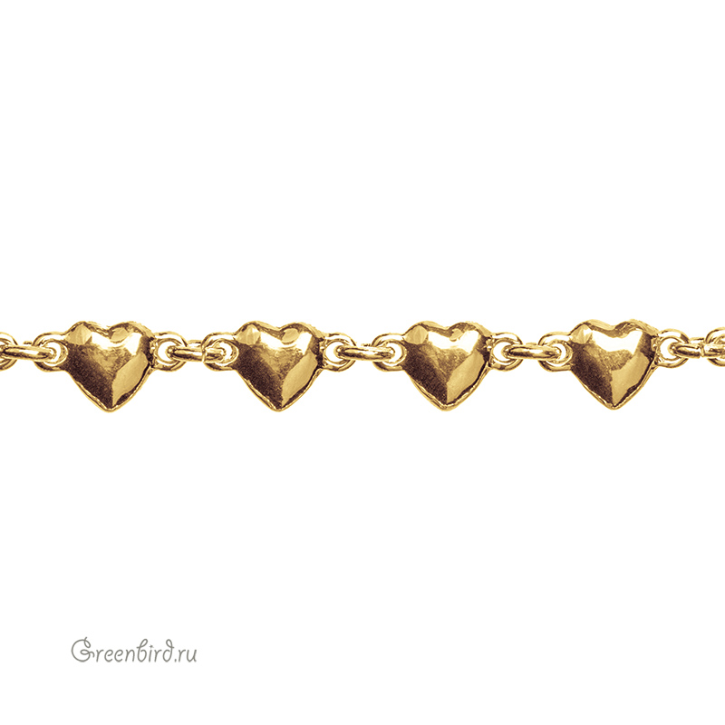 Фурнитура для бижутерии - цепочка декоративная с полыми бусинами в форме сердечек. Материал: латунь, покрытие: золото. Размер звеньев: 5,5 х 5,0 мм, толщина звена - 1,3 мм; размер бусин: 8,6 мм в длину, 7,5 мм в ширину, толщина бусины - 3 мм. Расстояние между бусинами - 7 мм. Производство: Китай. Цена указана за 30 см. При заказе 2 или 3 единиц этого товара вы получите отрезок длиной 60 или 90 см соответственно.