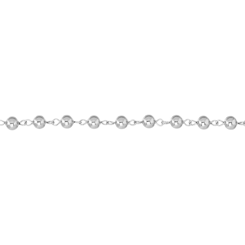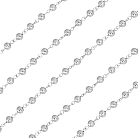 Фурнитура для бижутерии - цепочка декоративная с шариками-коннекторами. Материал: латунь, покрытие: родий. Диаметр шарика: 6 мм, длина соединительного элемента с шариком: 13 мм, толщина соединительного элемента: 0,7 мм. Производство: Китай. Цена указана за 30 см. При заказе 2 или 3 единиц этого товара вы получите отрезок длиной 60 или 90 см соответственно.