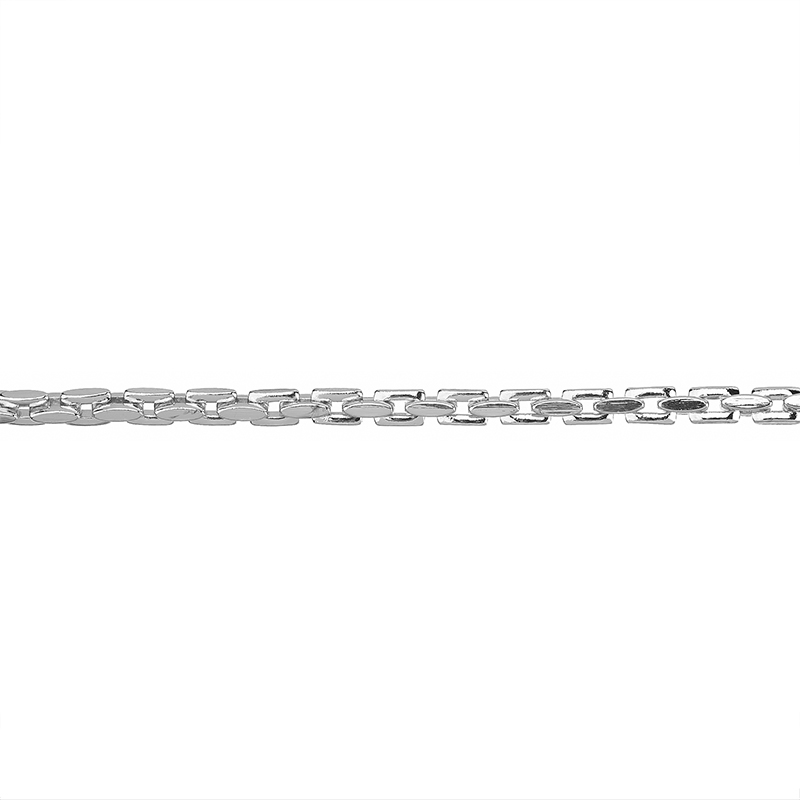 Фурнитура для бижутерии - цепочка фигурная, звенья объемные прямоугольные незапаянные. Материал: латунь, покрытие: родий. Размер звена: 5 x 7 мм, толщина звена: примерно 2,3 мм. Производство: Китай. Цена указана за 30 см. При заказе 2 или 3 единиц этого товара вы получите отрезок длиной 60 или 90 см соответственно.