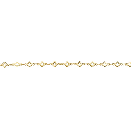 Фурнитура для бижутерии - цепочка с фигурными звеньями-коннекторами в виде клевера. Материал: латунь, покрытие: золото. Размер фигурных звеньев: 5,5 х 10 x 1,3 мм, размер звеньев-сцепок: 4 х 2,6 x 0,45 мм. Производство: Китай. Цена указана за 10 см. При заказе 2 или 3 единиц этого товара вы получите отрезок длиной 20 или 30 см соответственно.