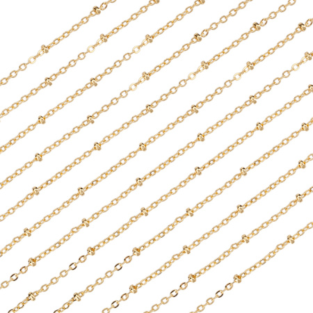 Фурнитура для бижутерии - цепочка декоративная с разделителями. Материал: латунь, покрытие: золото. Размер разделителей: 2,3 x 1,7 мм. Расстояние между элементами: 15 мм. Размер звеньев: 2,5 х 1,8 мм, толщина звена: 0,3 мм. Производство: Китай. Цена указана за 10 см. При заказе 2 или 3 единиц этого товара вы получите отрезок длиной 20 или 30 см соответственно.