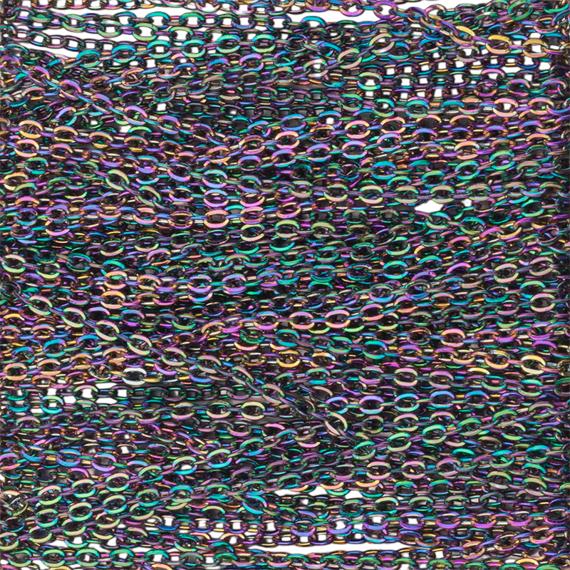 Фурнитура для бижутерии - цепочка декоративная тонкая. Материал: латунь, цвет покрытия: Iris, мультиколор. Размер звеньев: 2 х 1,5 мм, толщина звена: 0,3 мм. Производство: Китай. Цена указана за 10 см. При заказе 2 или 3 единиц этого товара вы получите отрезок длиной 20 или 30 см соответственно.