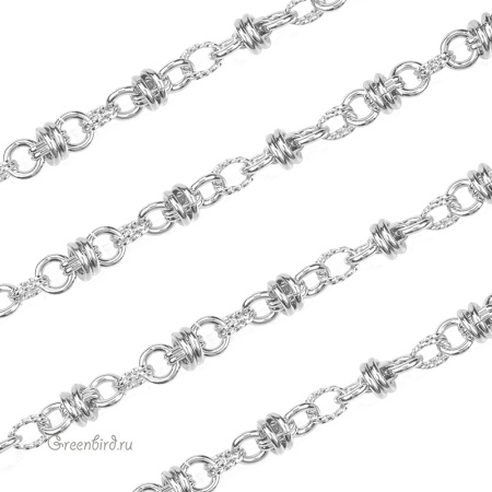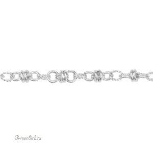 Фурнитура для бижутерии - цепочка фигурная (кольца не запаяны). Материал: латунь, покрытие: родий. Размер круглых звеньев: 9 х 9 мм, толщина звена: 2 мм, размер овальных звеньев-сцепок: 10 х 7,4 мм. Производство: Китай. Цена указана за 30 см. При заказе 2 или 3 единиц этого товара вы получите отрезок длиной 60 или 90 см соответственно.