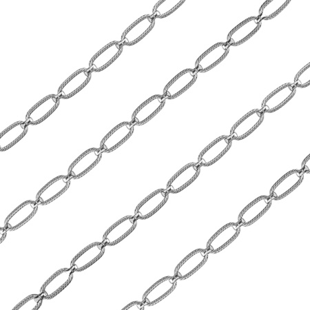 Фурнитура для бижутерии - цепочка фигурная с крупными незапаянными звеньями.Материал: латунь, покрытие: родий. Размер звеньев: 15 х 6,5 мм, толщина звена: 1,5 мм, внутренний размер звена: ~ 3 х 12 мм, размер звеньев-сцепок: 5 x 2 мм. Производство: Китай. Цена указана за 30 см. При заказе 2 или 3 единиц этого товара вы получите отрезок длиной 60 или 90 см соответственно.