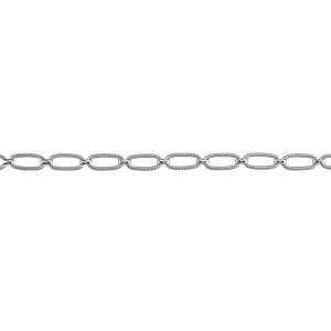 Фурнитура для бижутерии - цепочка фигурная с крупными незапаянными звеньями.Материал: латунь, покрытие: родий. Размер звеньев: 15 х 6,5 мм, толщина звена: 1,5 мм, внутренний размер звена: ~ 3 х 12 мм, размер звеньев-сцепок: 5 x 2 мм. Производство: Китай. Цена указана за 30 см. При заказе 2 или 3 единиц этого товара вы получите отрезок длиной 60 или 90 см соответственно.