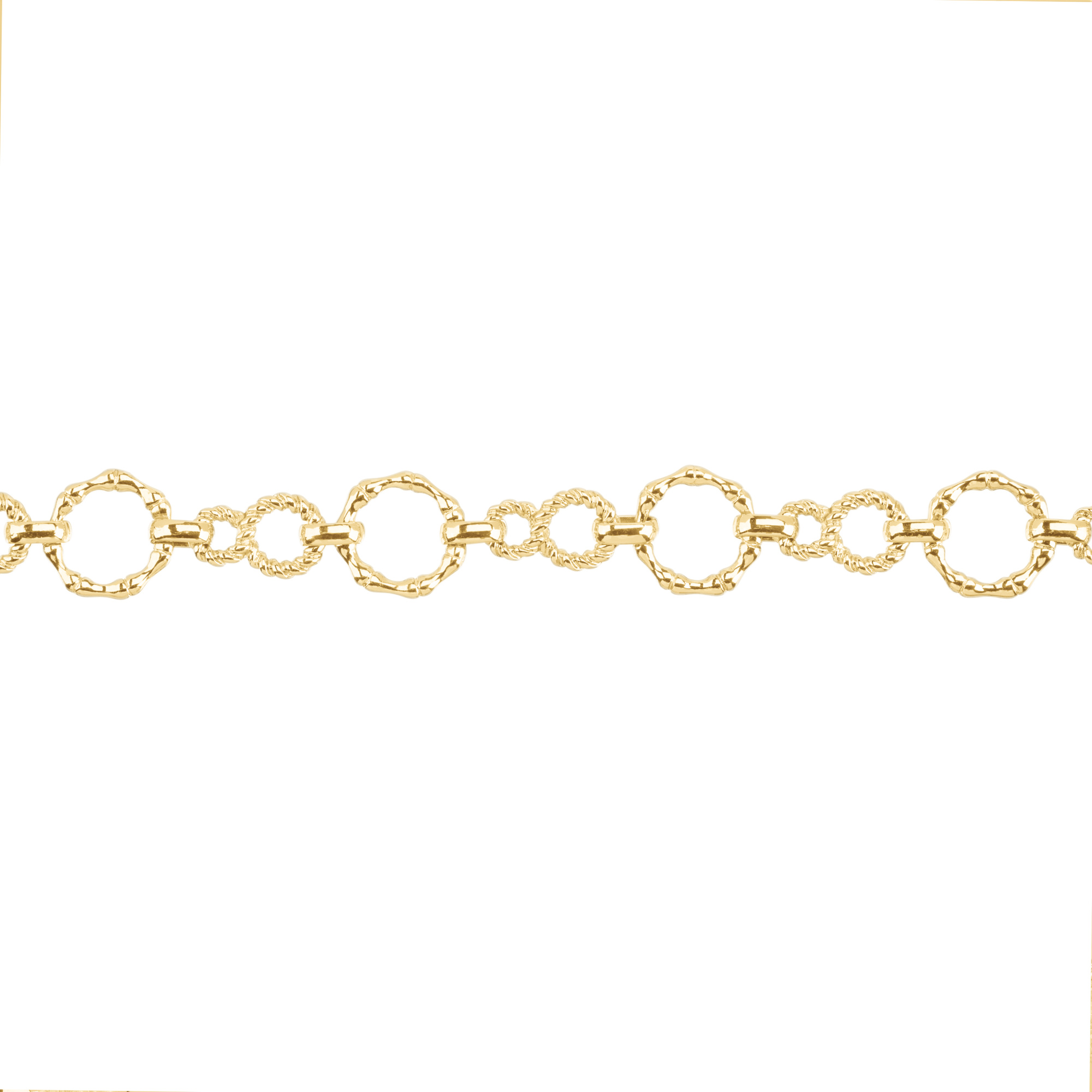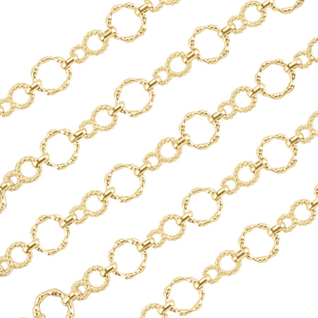 Фурнитура для бижутерии - цепочка фигурная. Соединительные звенья разъемные. Материал: латунь, покрытие: золото. Диаметр круглого звена: 18 мм, размер звена "бесконечность": 19 x 8,7 (12) мм; толщина звеньев: 2,7 мм. Размер соединительного звена: 9,5 x 3 x 6,5 мм. Производство: Китай. Цена указана за 30 см. При заказе 2 или 3 единиц этого товара вы получите отрезок длиной 60 или 90 см соответственно.