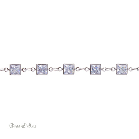 Фурнитура для бижутерии - цепочка декоративная с фианитами в форме квадрата. Материал: латунь, покрытие: родий. Цвет: crystal (прозрачный). Размер элемента-коннектора: 11 х 5,7 мм, толщина: 3 мм. Размер соединительного колечка: 4,7 х 2,5 мм Производство: Китай. Цена указана за 10 см. При заказе 2 или 3 единиц этого товара вы получите отрезок длиной 20 или 30 см соответственно.