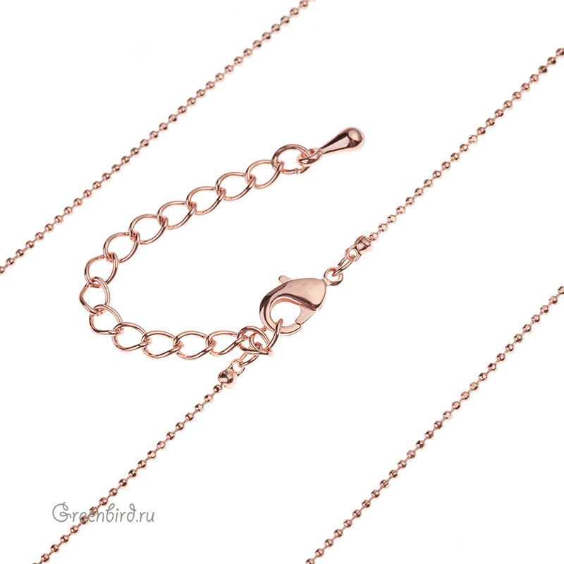 Фурнитура для бижутерии - цепочка с замочком-лобстером, с шариками и каллотами. Материал: латунь, покрытие: розовое золото. Длина основной цепочки с замочком: 43 см, шарики: 1 мм, удлинитель: 5 см. Производство: Корея. Цена указана за 1 шт.
