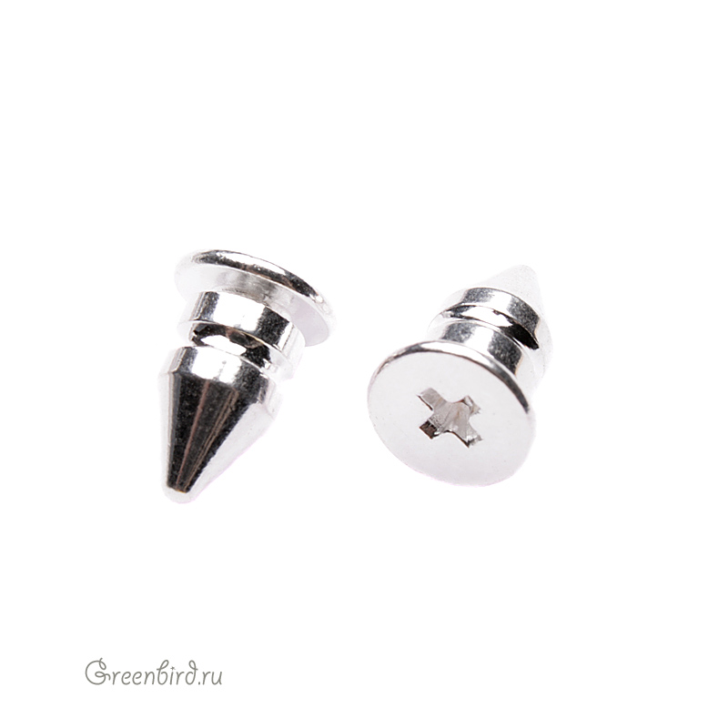 Шип с откручивающимся винтиком. Материал: латунь, цвет: серебро. Размер шипа: 7,9 х 4,9 мм, длина винтика: 5,7 мм, толщина винтика: 2,8 мм. Производство: Китай. Цена указана за 1 шт.