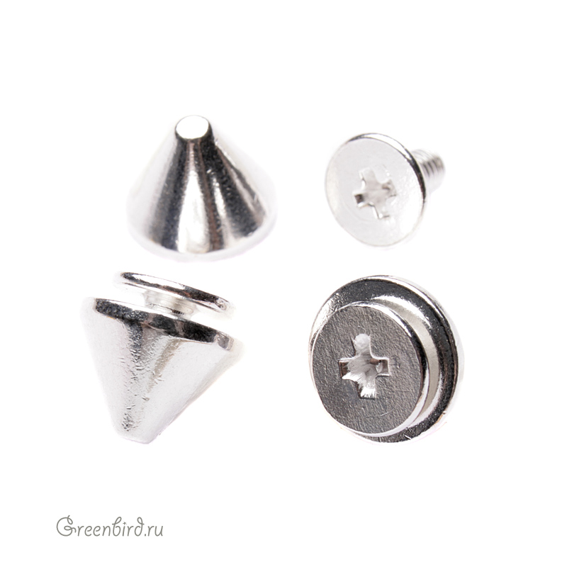 Шип с откручивающимся винтиком. Материал: латунь, цвет: серебро. Размер шипа: 6,6 х 8,9 мм, длина винтика: 5,8 мм, толщина винтика: 2,9 мм. Производство: Китай. Цена указана за 1 шт.