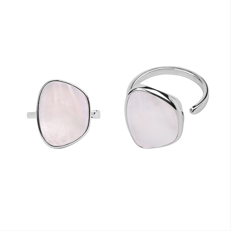 Кольцо разъемное с натуральным перламутром. Размер украшения регулируется. Материал: латунь, покрытие: родий. Цвет вставки: белый. Размер декоративного элемента: 19 x 15 мм, внутренний диаметр кольца: от 17,5 мм, толщина шинки: 2,3 мм. Производство: Китай. Цена указана за 1 шт.