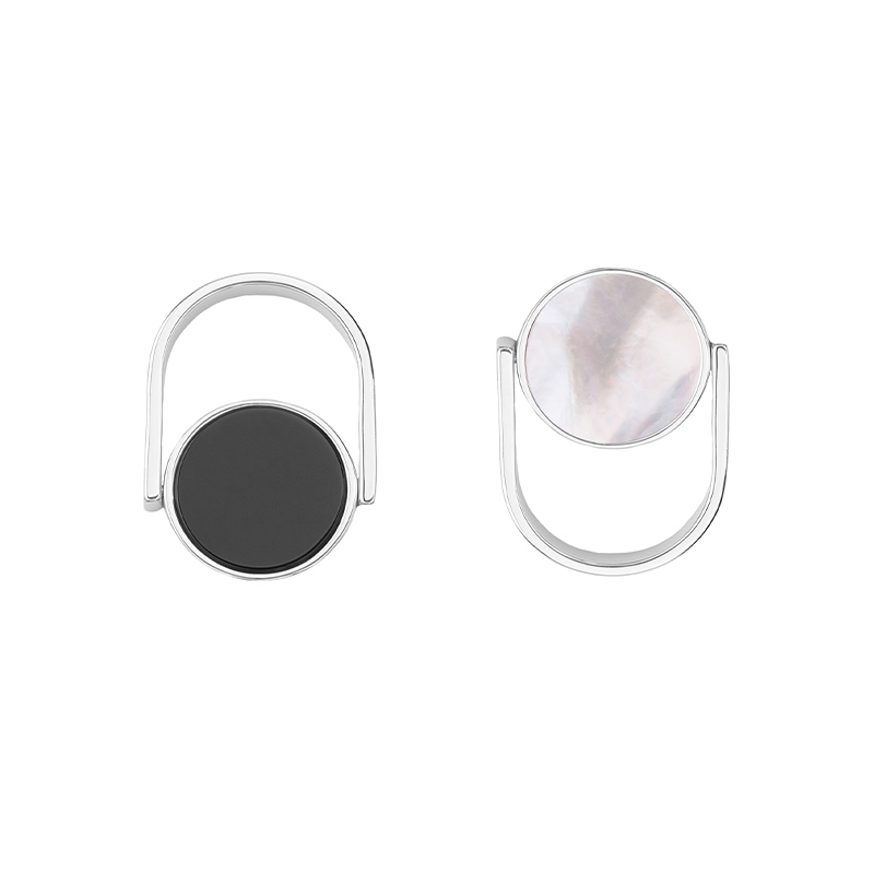 Кольцо двусторонеее (кольцо-перевертыш) с натуральным перламутром и керамикой. Размер украшения не регулируется. Материал: латунь, покрытие: родий. Цвет вставки: черный / белый. Диаметр декоративного элемента: 17 мм, внутренний диаметр кольца: 17-17,5мм, толщина шинки: 3,5 мм. Производство: Китай. Цена указана за 1 шт.