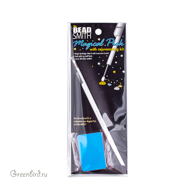 Аппликатор "Magical Pick" с адгезивным (клейким) резиновым наконечником. Предназначен для перемещения страз на выбранную точку, не оставляет на поверхности следов. Заостренный конец инструмента подходит для очистки лишнего клея вокруг страз (не забудьте очистить инструмент до высыхания клея). Многоразовый, легко поддается чистке с помощью входящего в комплект приспособления.