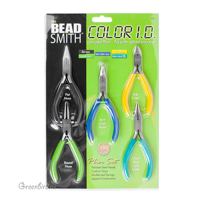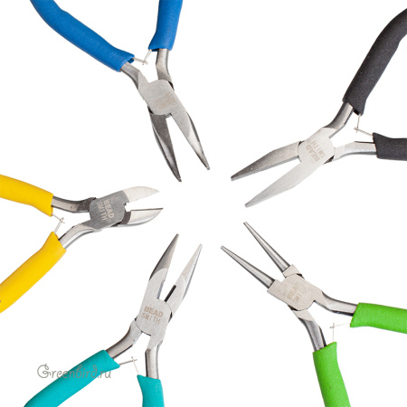 Набор из пяти инструментов Beadsmith Color ID для создания бижутерии. Базовые инструменты, подходят для новичков. Текстурированные ручки препятствуют скольжению инструмента в руке.