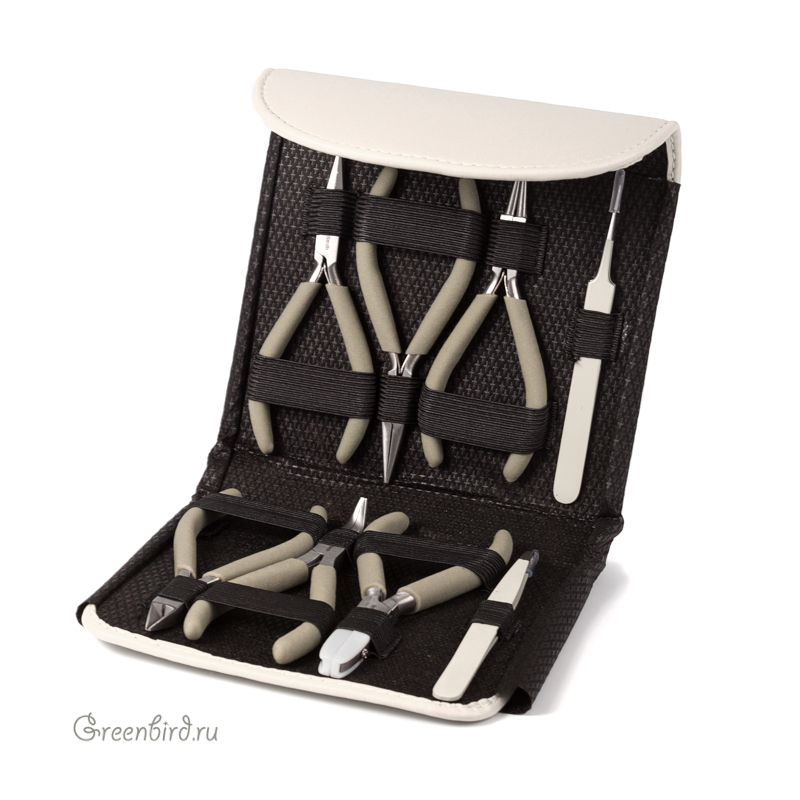 Набор из восьми инструментов Beadsmith в удобном чехле с клапаном на магнитной застежке, серия Color Options. Особая конструкция плотно смыкающегося шарнира и расположенные с двух сторон язычки-пружинки обеспечивают точный и мягкий ход инструментов, а отполированный металл позволяет использовать их для работы с фурнитурой, имеющей различное покрытие. Текстурированные ручки препятствуют скольжению инструмента в руке. Пинцеты снабжены силиконовыми защитными колпачками.