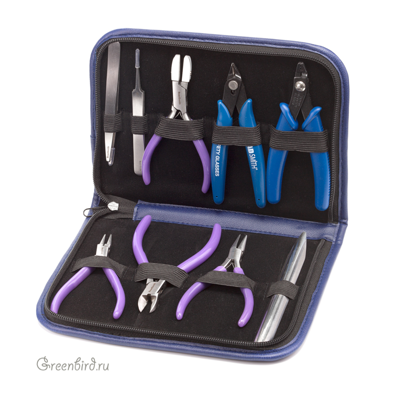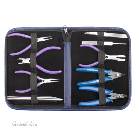 Набор из девяти инструментов Beadsmith Deluxe в удобном чехле (пенале) на молнии предназначен для выполнения широкого спектра работ при изготовлении бижутерии. Особая конструкция плотно смыкающегося шарнира и расположенные с двух сторон язычки-пружинки обеспечивают точный и мягкий ход базовых инструментов, а отполированный металл позволяет использовать их для работы с фурнитурой, имеющей различное покрытие. Пинцеты снабжены силиконовыми защитными колпачками.