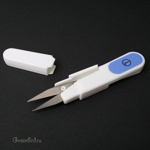 Ножницы для обрезки ниток – пружинные кусачки с защитным колпачком, размер: 12 см. Производство: Китай. Цена указана за 1 шт.